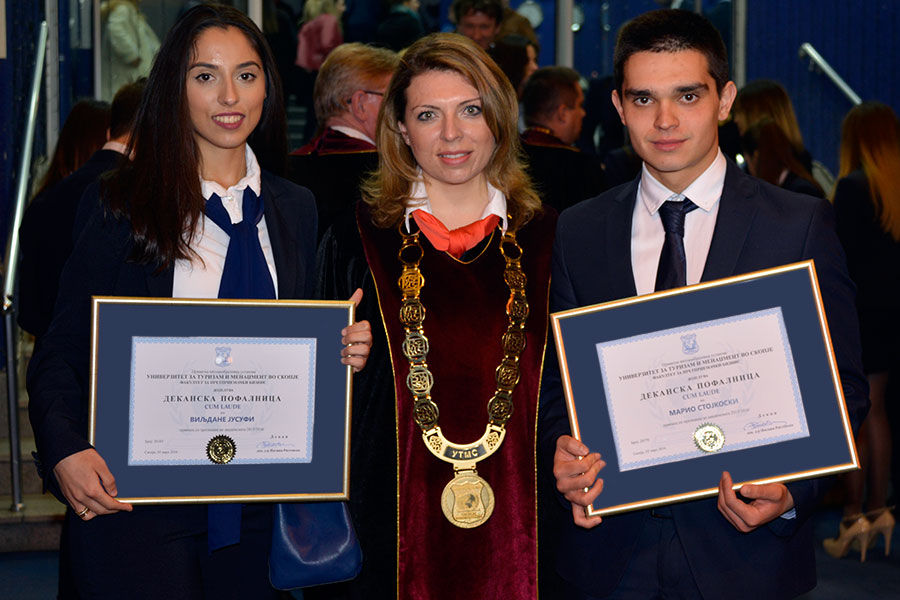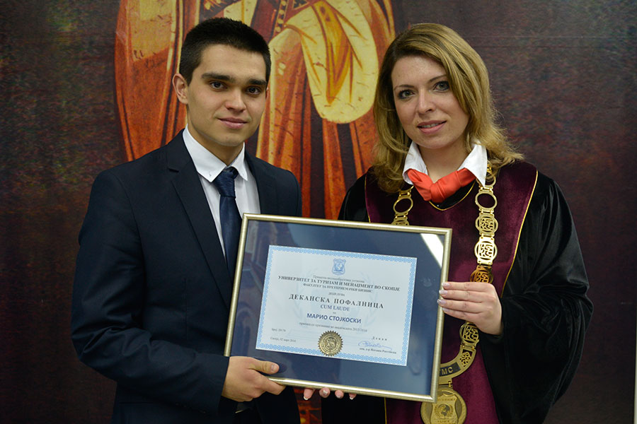 By the decision of the Academic Council of the Faculty of entrepreneurial business at the University of Tourism and Management in Skopje, in a solemn session Deans certificates were awarded to the students who showed best results in the fall semester in the academic year 2015/2016.