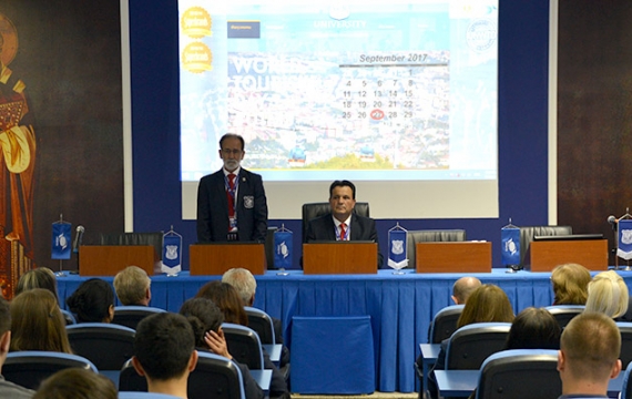 На УТМС започна новата академска 2018-2019 година со свечен академски час во амфитеатарот на универзитетот. Проректорот за настава на Универзитетот за туризам и менаџмент во Скопје, проф. д-р Мијалче...
